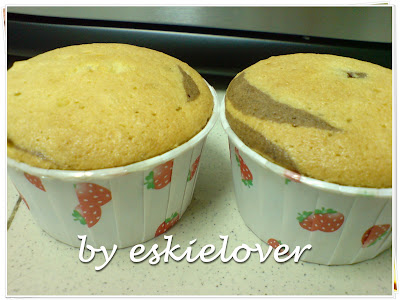 对不起啦,各位。。。。 我近来很懒惰打字。。。。 会把斑马牛油蛋糕做成杯子蛋糕是因为我家小姐下的order, 她说这样比较好拿,比较方便吃。。。 瓦卡卡 做出了的斑马纹还蛮OK。。。。 还有剩下的面糊,我做了一盘送给老爷的同事吃。。。